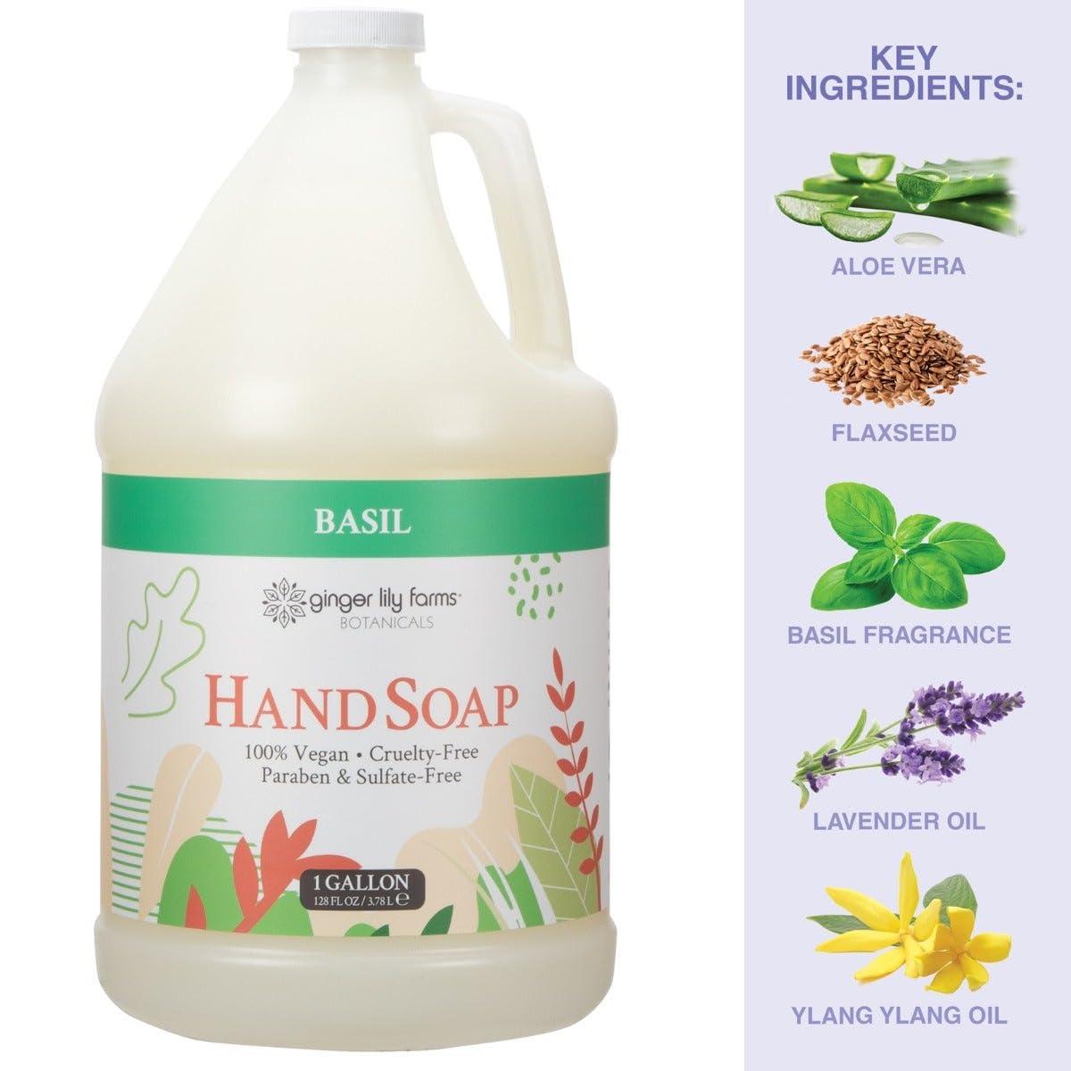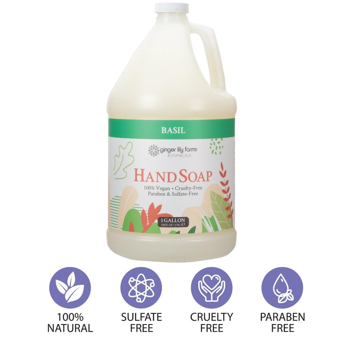 Ginger Lily Farms Botanicals All-Purpose Liquid Hand Soap Refill, 100% Vegan & Cruelty-Free, Basil Scent, 1 Gallon (128 fl oz)
