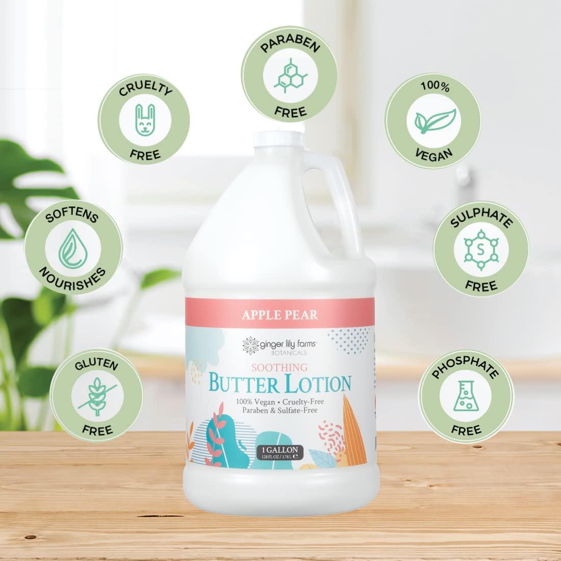 Ginger Lily Farms Botanicals Soothing Butter Lotion for Dry Skin, 100% Vegan & Cruelty-Free, Apple Pear Scent, 1 Gallon Refill (128 fl oz)