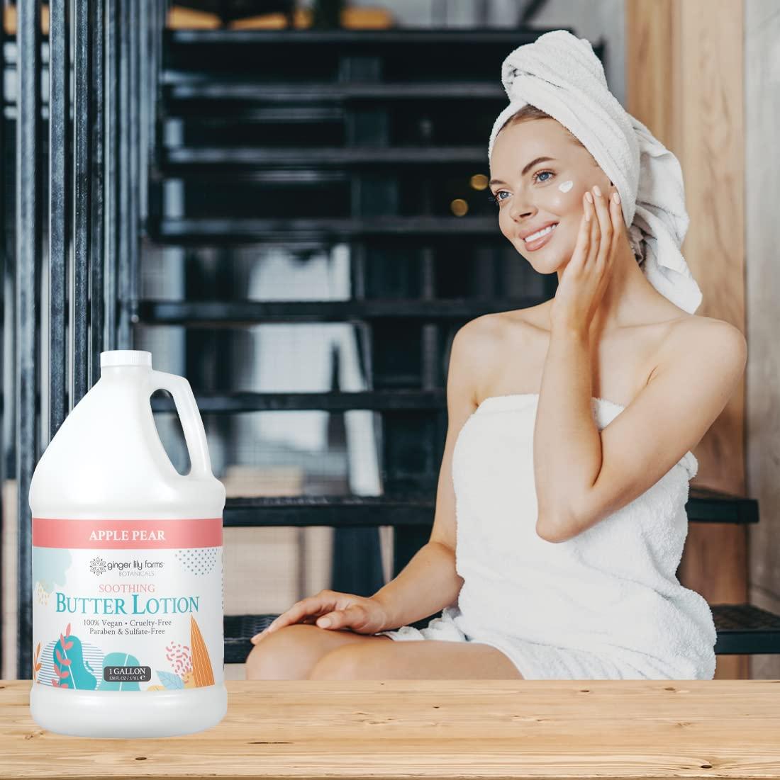 imageGinger Lily Farms Botanicals Soothing Butter Lotion for Dry Skin 100 Vegan ampamp CrueltyFree Apple Pear Scent 1 Gallon Refill 128 fl oz
