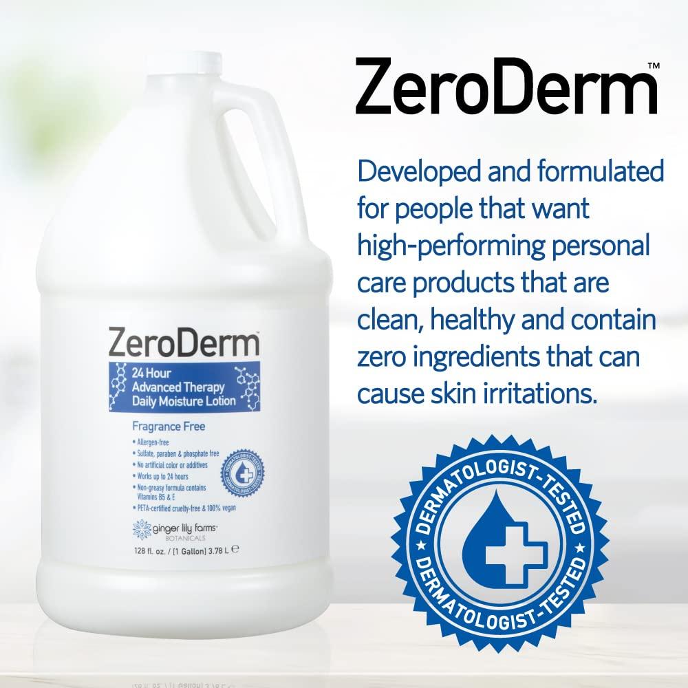 ZeroDerm 24 Hour Advanced Therapy Daily Moisture Lotion was developed and formulated for people that want a high-performing hand & body lotion that is clean, healthy and contains zero ingredients that can cause skin irritations. ZeroDerm was developed and formulated for people that want high-performing personal care products that are clean, healthy and contain zero ingredients that can cause skin irritations. Made by Ginger Lily Farms, the leader in refill personal care products, ZeroDerm products are the made with the best ingredients to give you the ultimate shower experience.