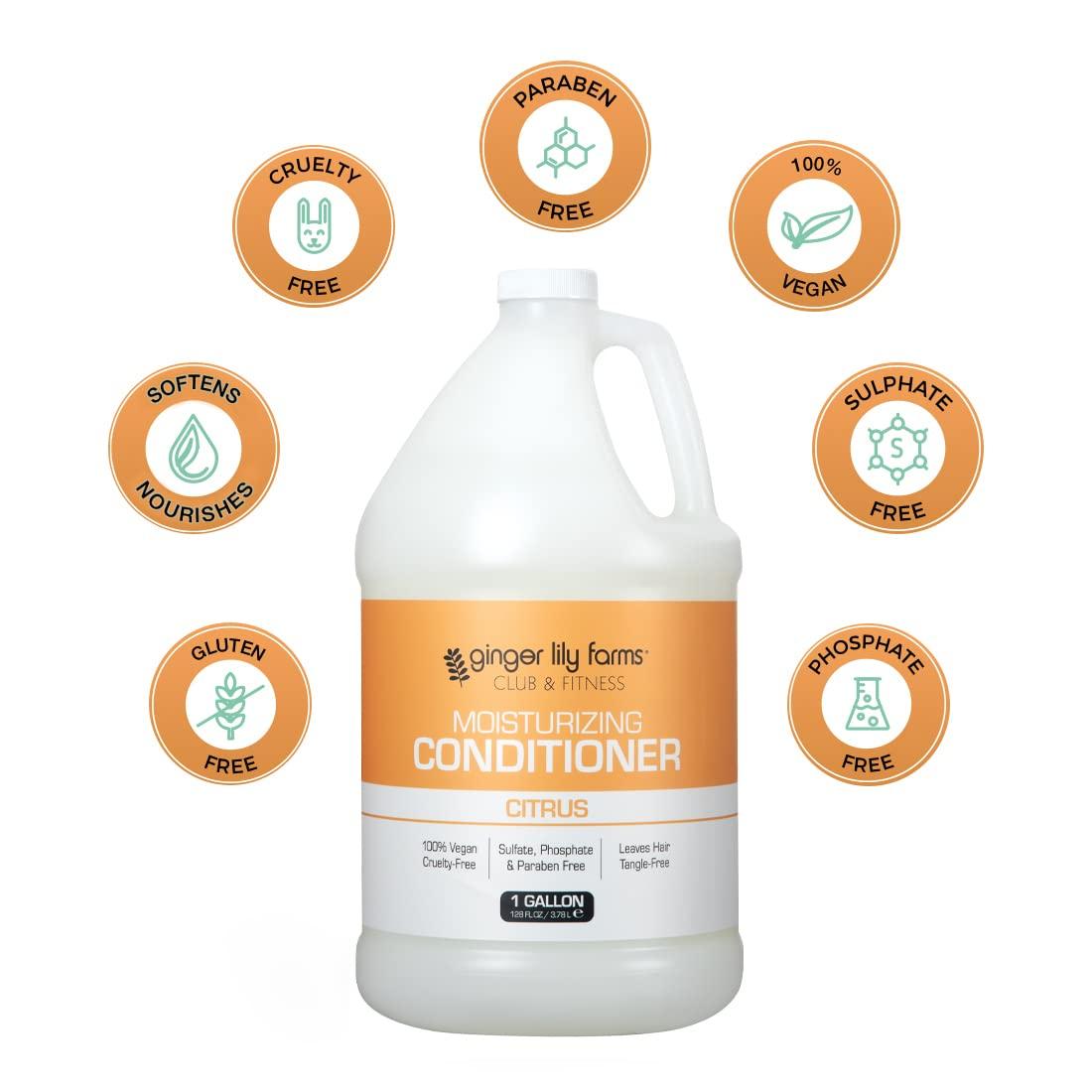 Ginger Lily Farms Club & Fitness Citrus Moisturizing Conditioner smooths, restores and revitalizes dry hair with lasting moisture for incredibly soft, shiny hair. Our moisturizing conditioner works with your hair’s natural oils to deeply penetrate every hair strand and improve the overall health, look and feel of your hair. Dry hair is instantly restored and revitalized. Ginger Lily Farms Club & Fitness Hair Conditioner is enriched with naturally derived botanicals to provide weightless hydration to all hair types and is paraben, sulfate, phosphate and gluten-free. The cruelty-free conditioner is 100% vegan and PETA certified. Recommended for commercial use in locker rooms, hair salons, and home use for refills.