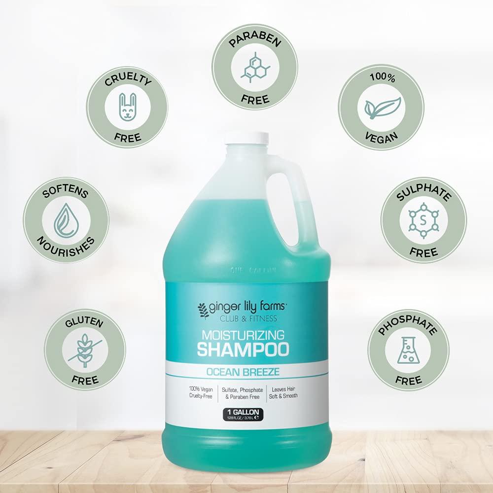 Ginger Lily Farms Club & Fitness Moisturizing Shampoo for All Hair Types, 100% Vegan & Cruelty-Free, Ocean Breeze Scent, 1 Gallon (128 fl oz) Refill(128 Fl Oz (Pack of 1))