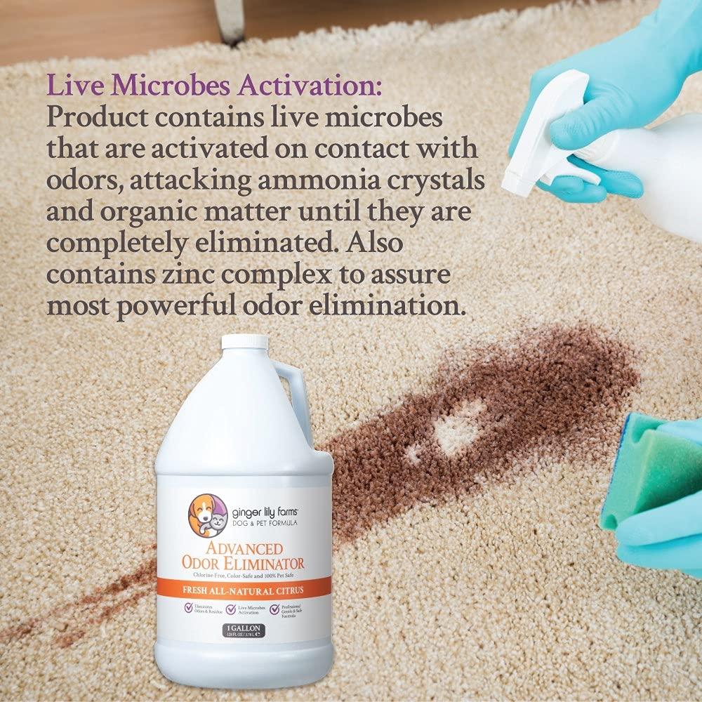 Ginger Lily Farms Dog & Pet Advanced Citrus Odor Eliminator is made specifically to get rid of odors left behind by your pets. For best results, use right away after the pet has made an accident and follow directions carefully. Formula contains no hazardous propellants and is safe to use around kids and pets. Use on carpet, furniture and upholstery.